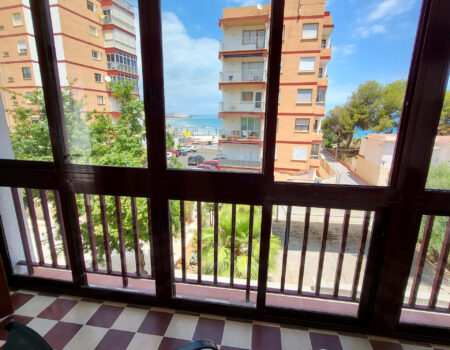 Compuesto por amplia terraza acristalada con vistas al mar. Salón, baño, cocina americana y 2 habitaciones una con cama de matrimonio, y otra con 2 camas individuales.